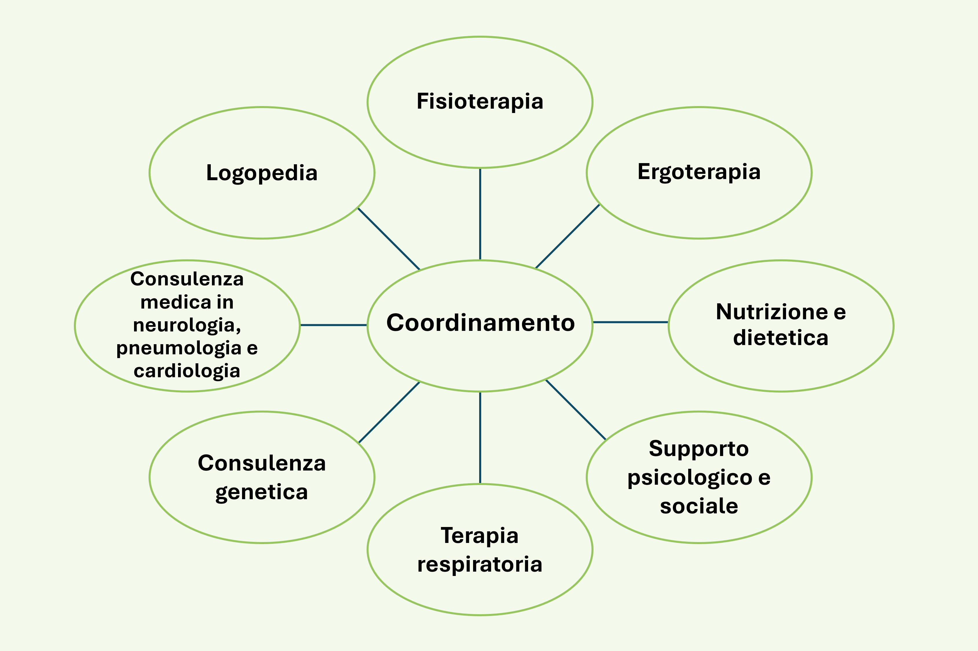 I sintomi della malattia di Pompe possono interessare diverse parti del corpo. Di conseguenza, questo richiede spesso il coinvolgimento di un'ampia équipe di specialisti e terapisti, sia nella fase diagnostica, in cui vengono eseguiti svariati esami, sia nella fase terapeutica, per un monitoraggio ottimale del trattamento e dell'evoluzione della malattia.